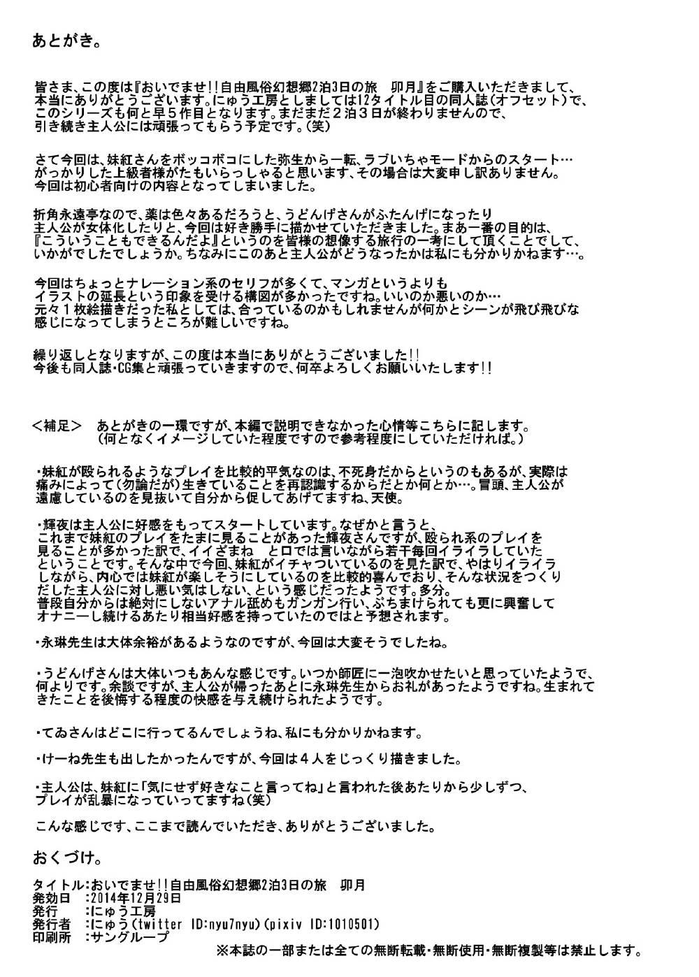 東方Project おいでませ!!自由風俗幻想郷2泊3日の旅 卯月