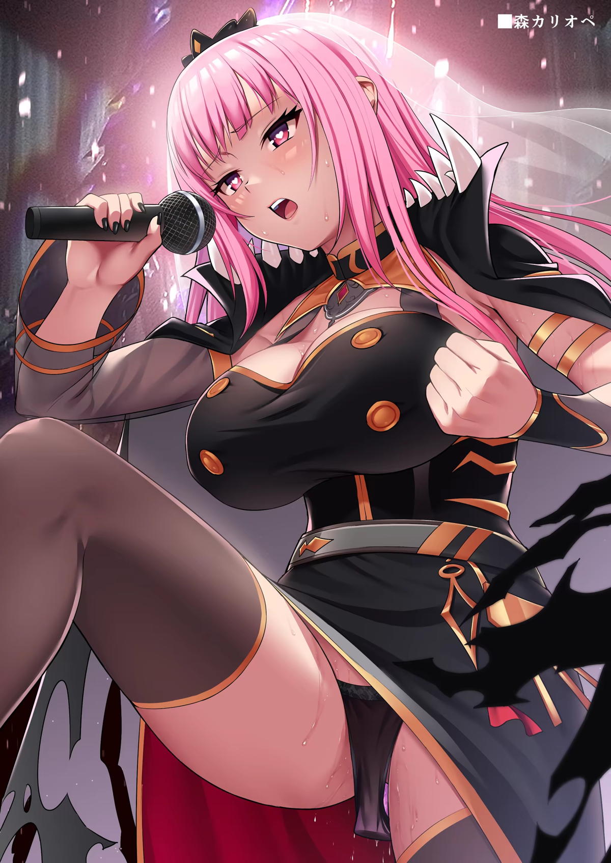 バーチャルYouTuber ヒョウ柄ビキニ姿のカリオペが手繋ぎ騎乗位でハメて絶頂しちゃう!!