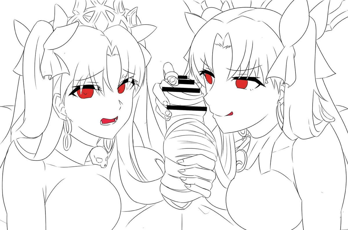 Fate/Grand Order イシュタルとエレちゃんの髪コキ絵